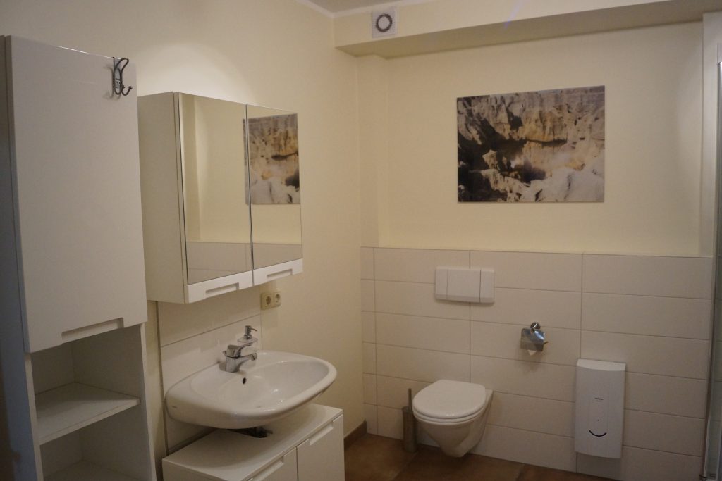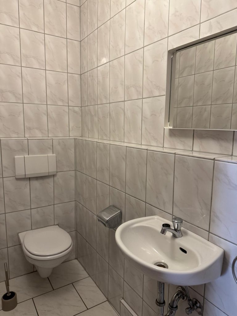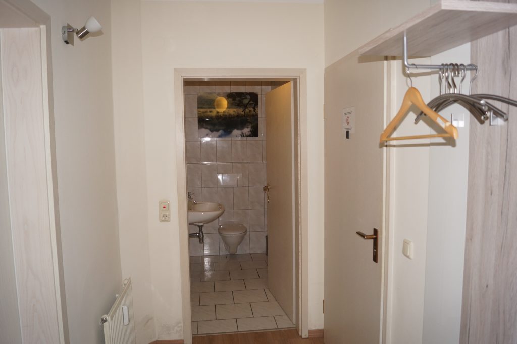 Im Flur befindet sich ein Gäste WC. Das Hauptbad ist durch ein Schlafzimmer erreichbar.