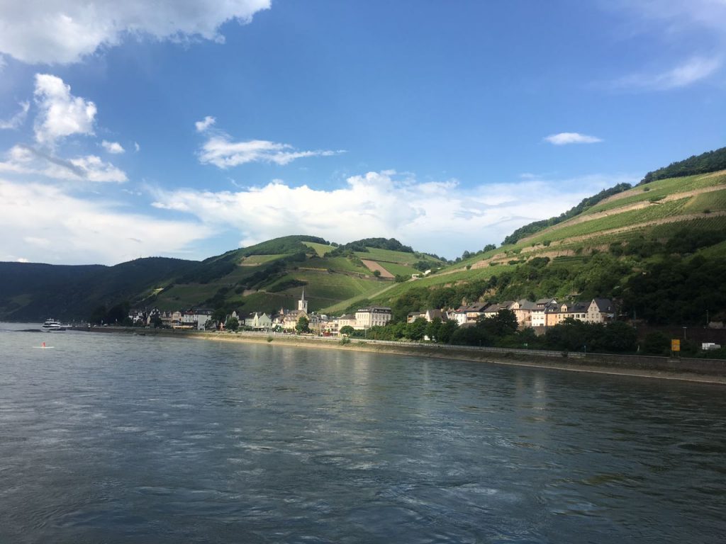 Die Ferienwohnungen haben einen Blick auf den Rhein und die Weinberge.
